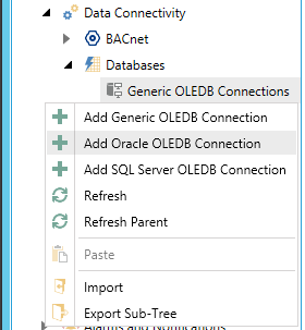 Right-click the Generic OLEDB Connections node then click on Add Oracle OLEDB Connection, as shown below.
