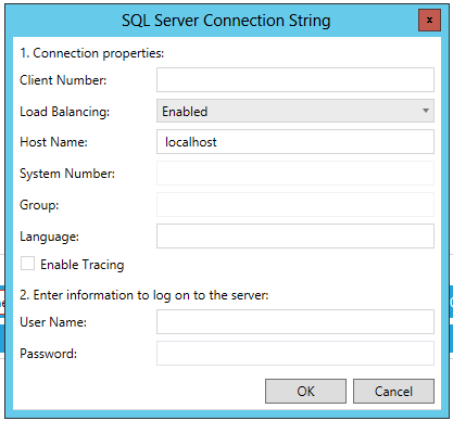 In Connection String, you can click on the Configure Connection link, which will open the Oracle Native Connection String window, similar to the one shown below. Once you have entered the requested info, click OK to return to the connection properties.