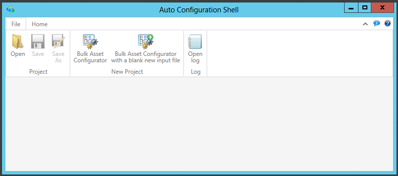 Bulk Asset Configurator - Clicking on "Bulk Asset Configurator" opens the Auto Configuration Shell window, shown below, which provides access to the Bulk Asset Configurator utility; a tool to automatically instantiate Equipment in AssetWorX based on an Equipment class and unique parameter values for each instance of Equipment. Click HERE for more information about the Bulk Asset Configurator.