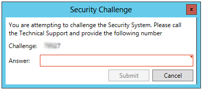 Challenge Security - Clicking this option brings up the Security Challenge window, shown below. This allows users to generate a challenge number that can be used to provide requested information to ICONICS Technical Support relative to ICONICS component security and licensing. Click HERE for more information about the Challenge Security option.