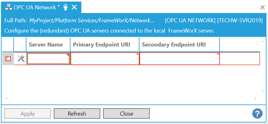 This opens the OPC UA Network properties window in the right side of the Workbench, as shown below.