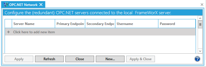 This opens the FrameWorX Network properties window in the right side of the Workbench as shown below.