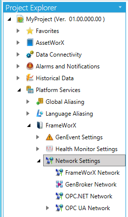 Selecting the Network Settings Node in the FrameWorX Provider in the Workbench