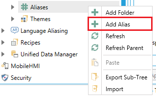 Right-click on the Aliases node (or the alias folder you want to add the alias to) then select Alias, as shown below.