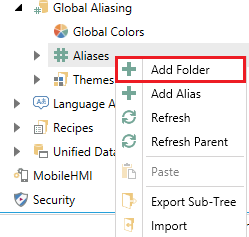 Right-click on the Aliases node and select the new Add Folder command, as shown below.