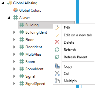 To ensure that your alias definitions are up to date, click on the Refresh button or right-click the alias in the tree control and select Refresh.