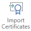 The Import Certificates button, shown below, in the Certificates section of the Home ribbon in the Workbench, allows users to import certificates involved in the verification and validity authentication of parties involved in electronic transactions.