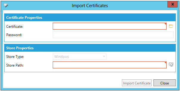 When you have completed your settings, click on the Import Certificate button, then Close to return to the Workbench.