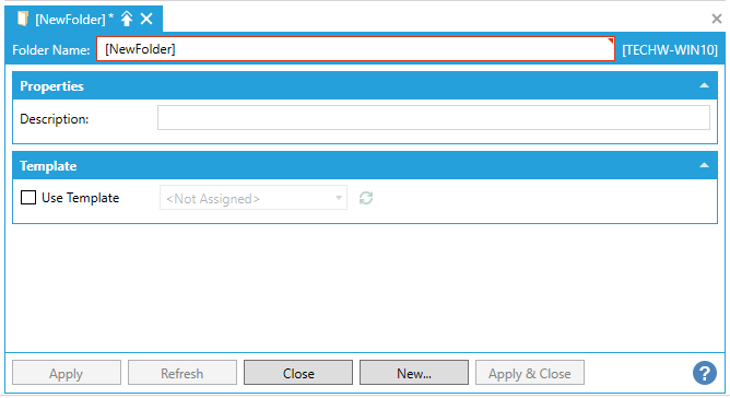 This opens the New Folder properties in the right side of the configurator, as shown below. In the Folder Name field, specify a name for the new folder.