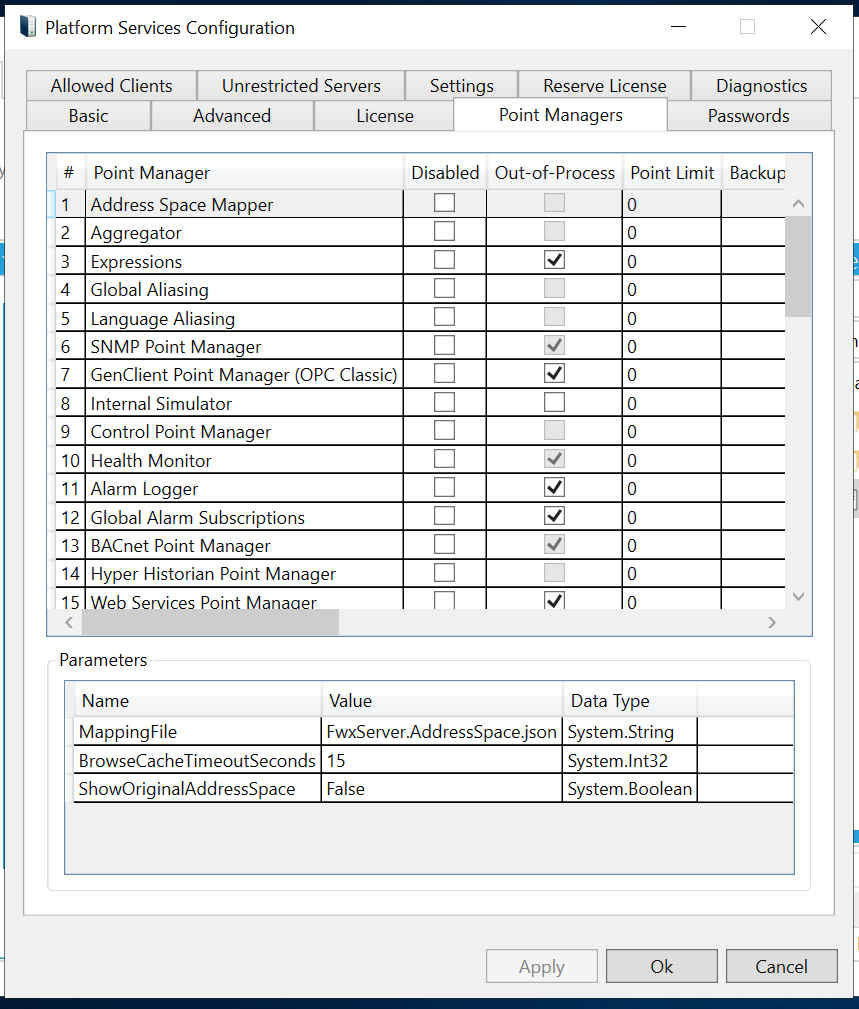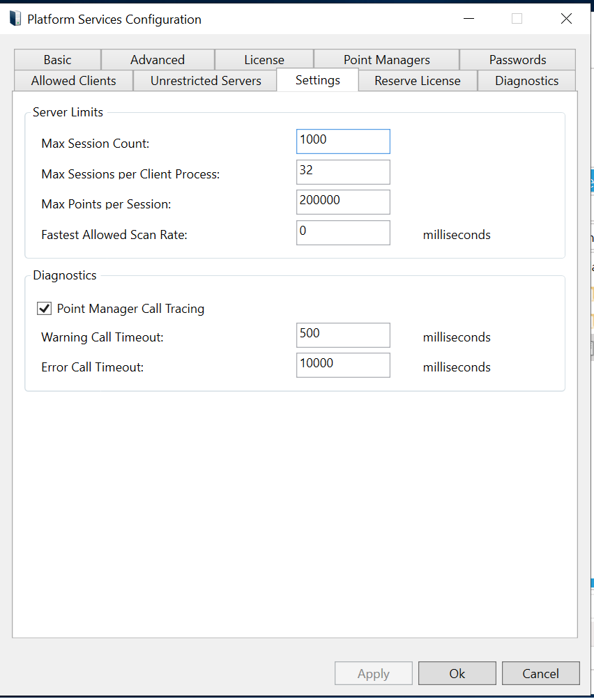 Max Points per Session - Limits the number of all points per session. The points include data points, security points, licensing, alarm subscriptions, etc. NOTE: Some points (security, licensing) are ‘invisible’, so the limit should be greater than the expected number of data points.