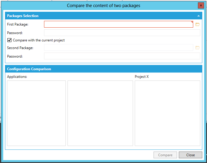 1. Once you have completed your review of the package comparison, click Close to close the 'Compare the content of two packages' window.