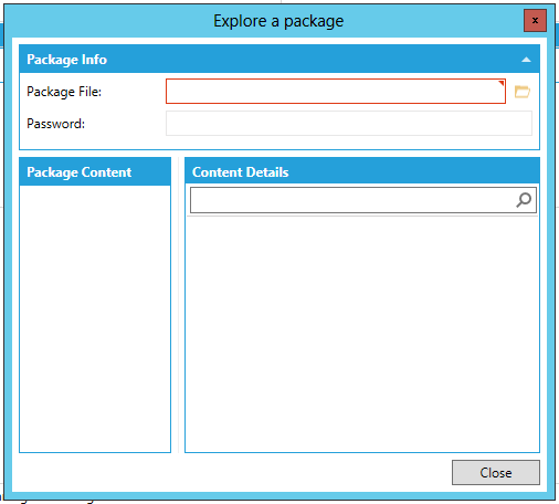 'Explore a package' Window with Populated Package Content and Content Details Sections