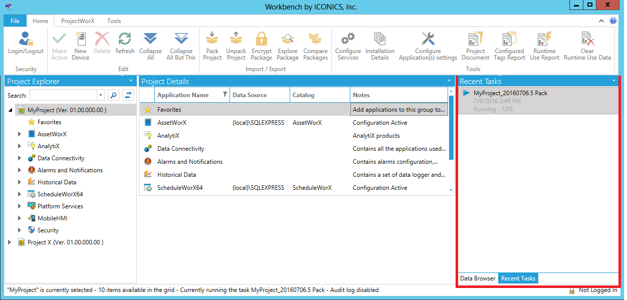 1. The Workbench then begins to process the packaged project. You can see the status of the project in the Task Panel in the right side of the Workbench, as shown below.