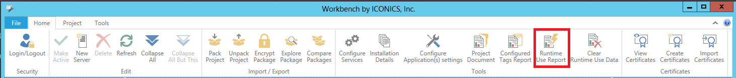 Runtime Use Report Button in the Tools Section of the Home Ribbon in the Workbench
