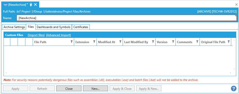Note: For security reasons, potentially dangerous files such as assemblies (.dll), executables (.exe), and batch files (.bat) will not be added to the archive.