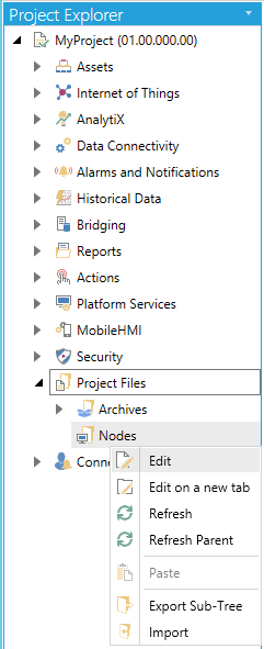 Right-click the Nodes node, then select Edit from the pulldown menu, as shown below.