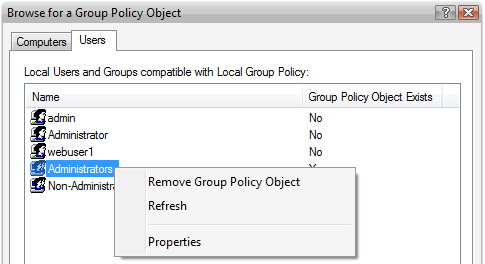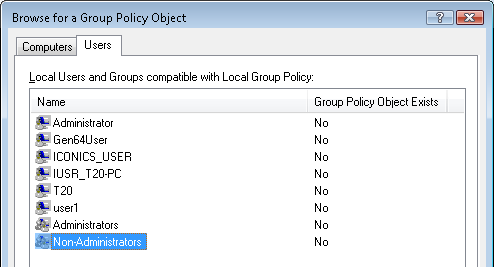 Figure 1- Browsing for the Non-Administrators Local Group Policy