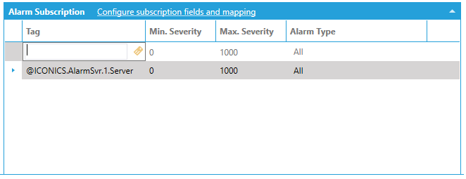Once you have updated the Alarm Subscription section, shown below, you can enter an individual Tag (via the text entry field or clicking on the