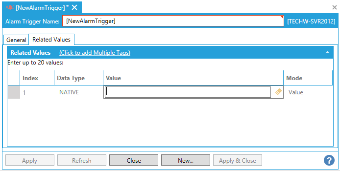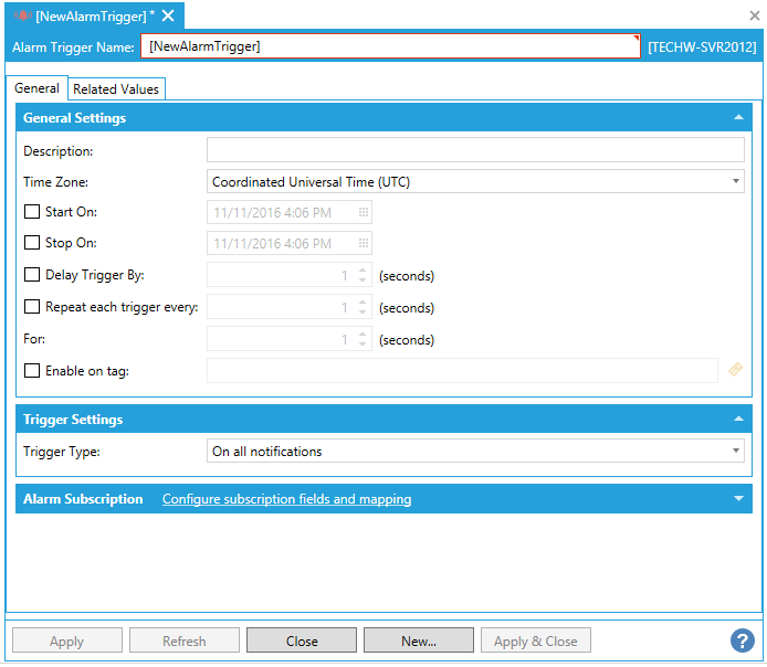 This opens the New Alarm Trigger Properties, shown below.