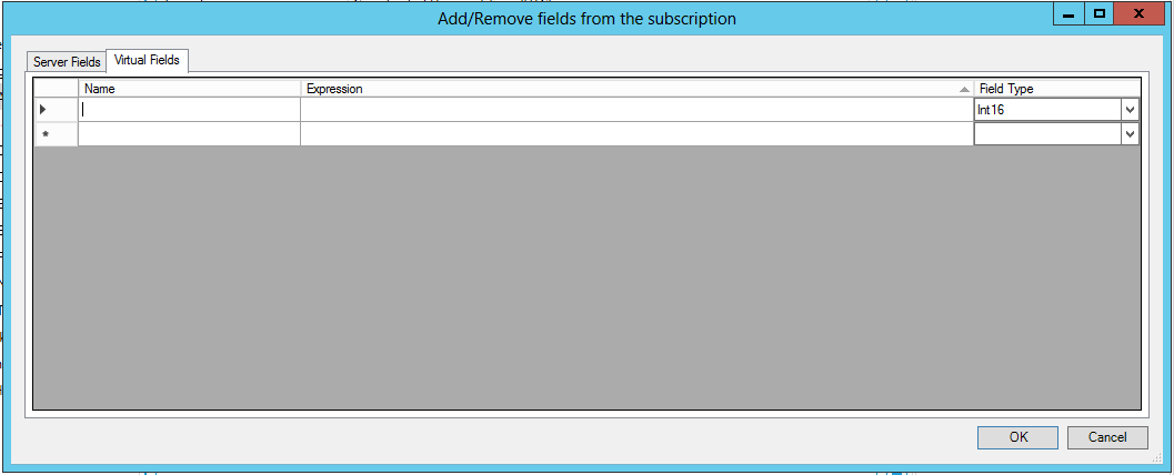 Add/Remove fields from the subscription Window (Server Fields Tab Shown)
