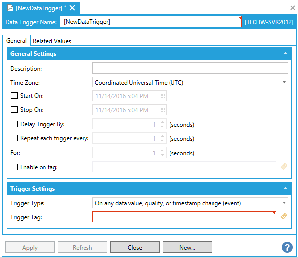 1. This opens the New Data Trigger Properties, shown below.