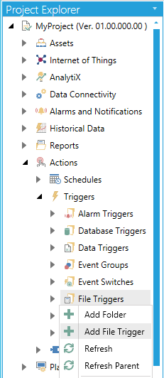 Add File Trigger from Project Explorer in the Workbench