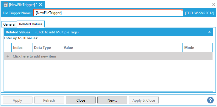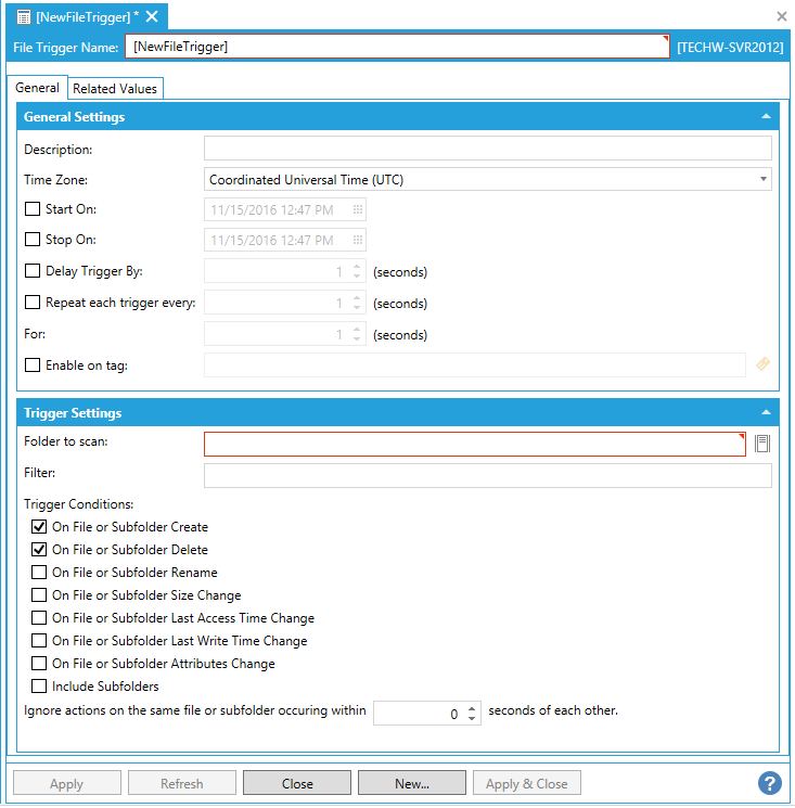 This opens the New File Trigger Properties, shown below.