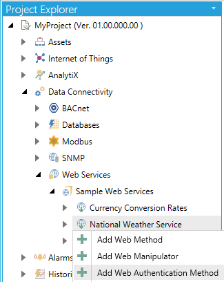 - Right-click on a sub-branch beneath a Web Service and select "Add Web Authentication Method", as shown below.