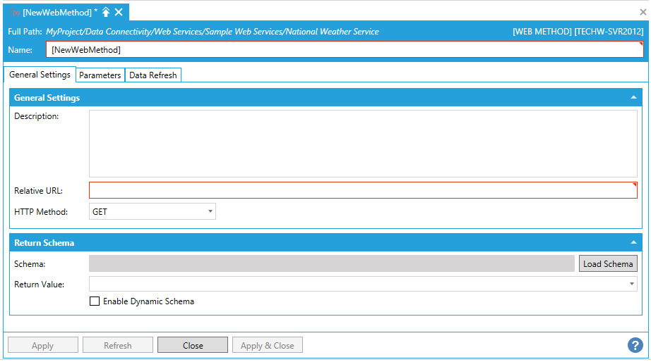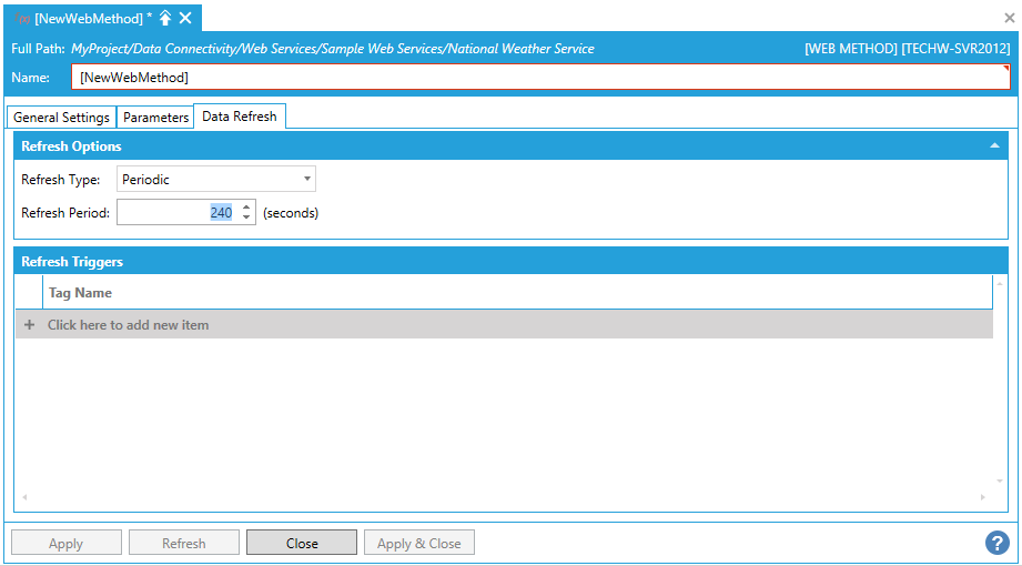 Web Method Properties - Data Refresh Tab