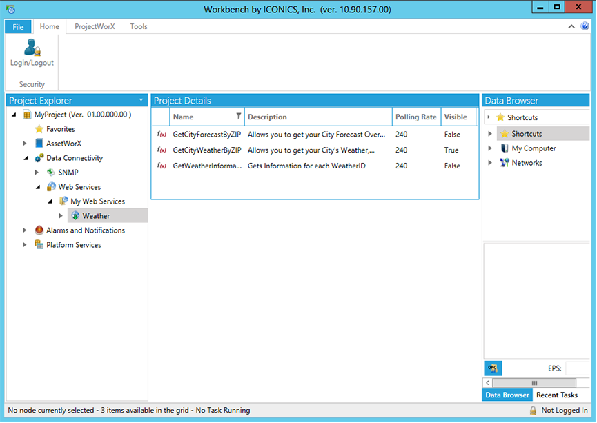 The Web Services Provider within the Workbench, shown below, acts as a configurable data source, similar to how data is provided to the HMI/SCADA suite via other data connectors including OPC, BACnet, SNMP or other data sources.