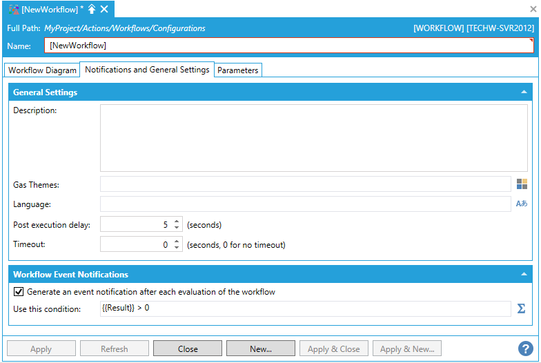 This opens the New Workflow properties in the Workbench, shown below.
