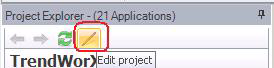 On the Project ribbon, click the Edit Project button . Or, at the top of the Project Explorer you can click the Edit Project icon button. The Add/Remove Project dialog box appears. Click here to see an example.