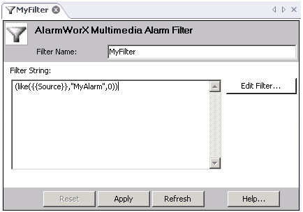 Filters allow you to retrieve a specified subset of alarms from your Subscription. This will allow later on certain agents to be trigger based on a specific alarm or group of alarms, as needed. For more information, refer to the Multimedia Alarm Filters topic.