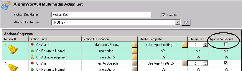 Action Set's Ignore Schedule Checkbox (circled, on the right)