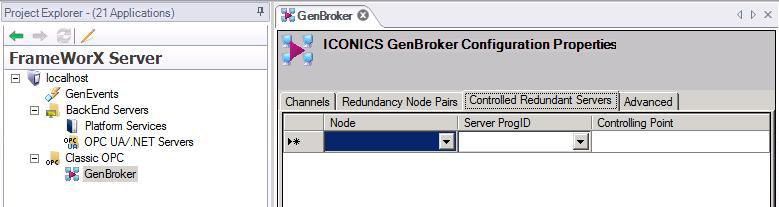 With GenBroker, you can add a point that controls whether a classic OPC server should be considered alive for redundancy switching. You can gain this level of control for the following types of redundant servers:
