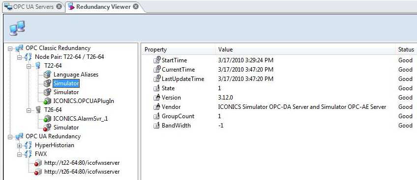 NOTE: OPC UA redundancy works with for Data Access and Historical OPC UA servers. Alarms & Conditions OPC UA Servers are not supported.