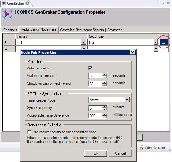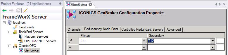 For AlarmWorX64 Server and Logger, you can define node pairs through the GENESIS64 Workbench, but for AlarmWorX32 Server and TrendWorX32 Server and Logger, use GenBroker.