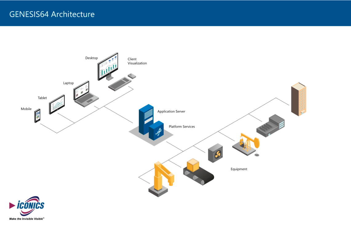 ICONICS GENESIS64 is a powerful, 64-bit, Web-enabled, OPC HMI/SCADA suite. GENESIS64 takes full advantage of the convergence of 64-bit-based computing machinery, the latest Microsoft operating systems (Windows 10, Windows 8, Windows Server 2012, Windows 7, Windows Server 2008, etc.) and the growing customer demand for engaging three-dimensional graphic visualization of business processes.
