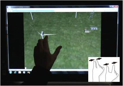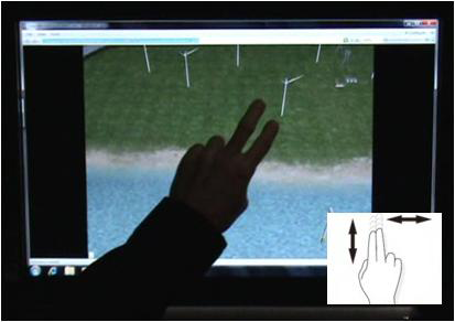 GENESIS64 supports the Windows 7 Multitouch Platform, which lets your runtime users interact with GraphWorX64, AlarmWorX64, and TrendWorX64 displays directly on a monitor using hands-on-monitor gestures to manipulate objects on the screen. This is especially helpful when a GraphWorX64 display contains an EarthWorX map or a 3D scene. When a user touches a touch-sensitive Windows 7 enabled device or desktop, the Windows 7 Multitouch Platform sends gesture messages to GENESIS64, allowing the user to scroll, zoom, pan, orbit or rotate, drag-and-drop, select items, and right-click to open pop-up menus. The gestures for achieving these results are described below.