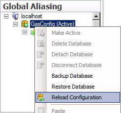 If you modify your configuration database, you should reload it so that all connected clients are notified of the change and would use the latest values. To reload the database, right-click the configuration database and select Reload Configuration.