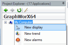 Launch the ICONICS GraphWorX64 application and open a new display.