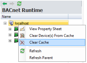 Alternatively, clearing Device & Objects Cache can also be done via the BACnet Runtime Provider: