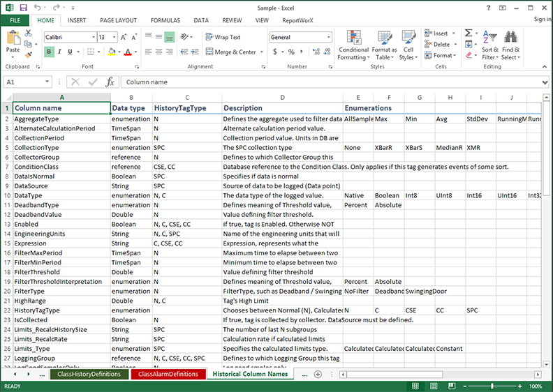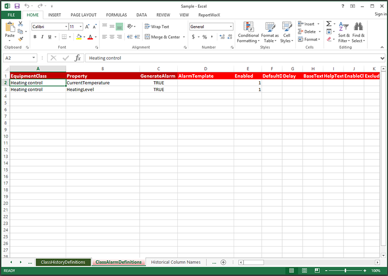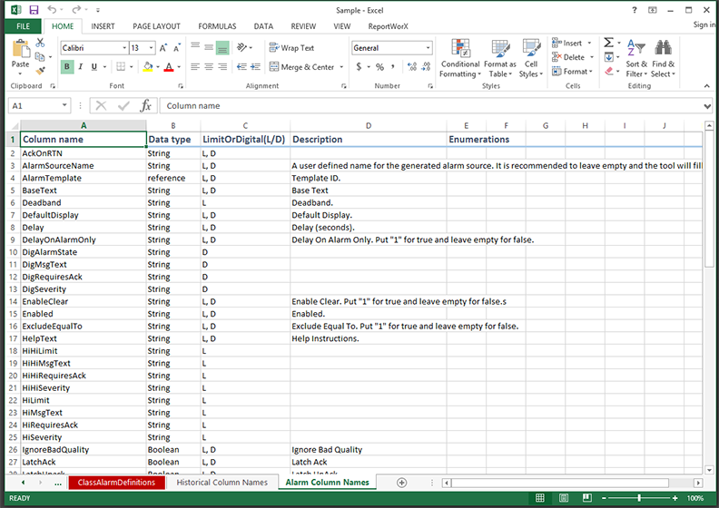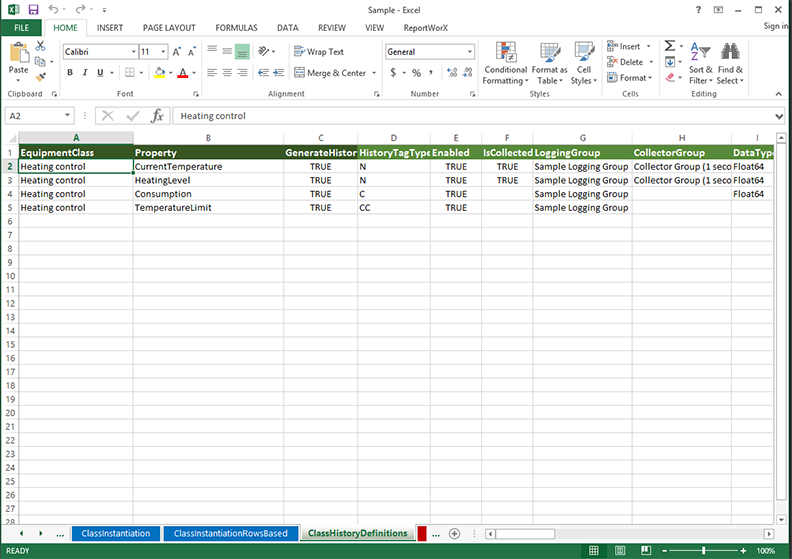 Sheets MUST be named: ClassInstantiation, ClassInstantiationRowsBased, ClassExtendedDefinitions, ClassHistoryDefinitions, ClassAlarmDefinitions.