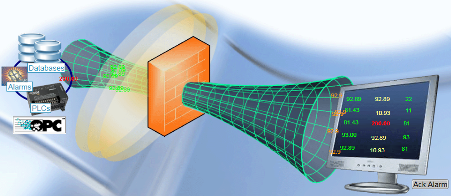 With ICONICS , firewalls are not a problem because GENESIS64 supports data tunneling which makes it possible to establish data communication with hardware devices behind a firewall.