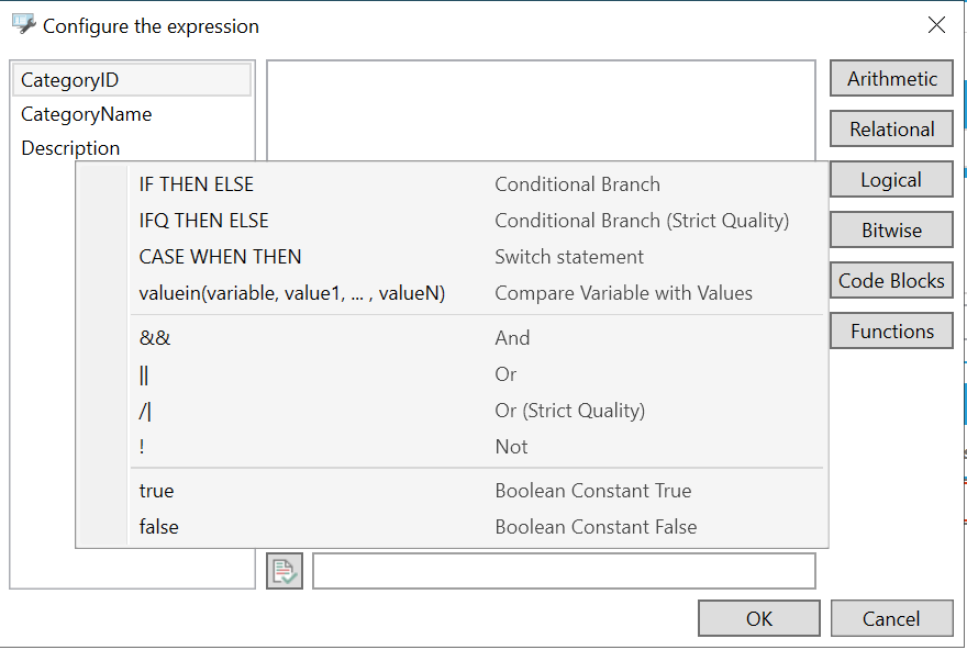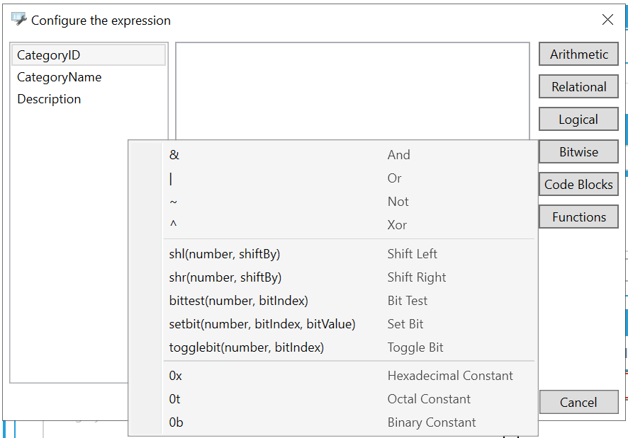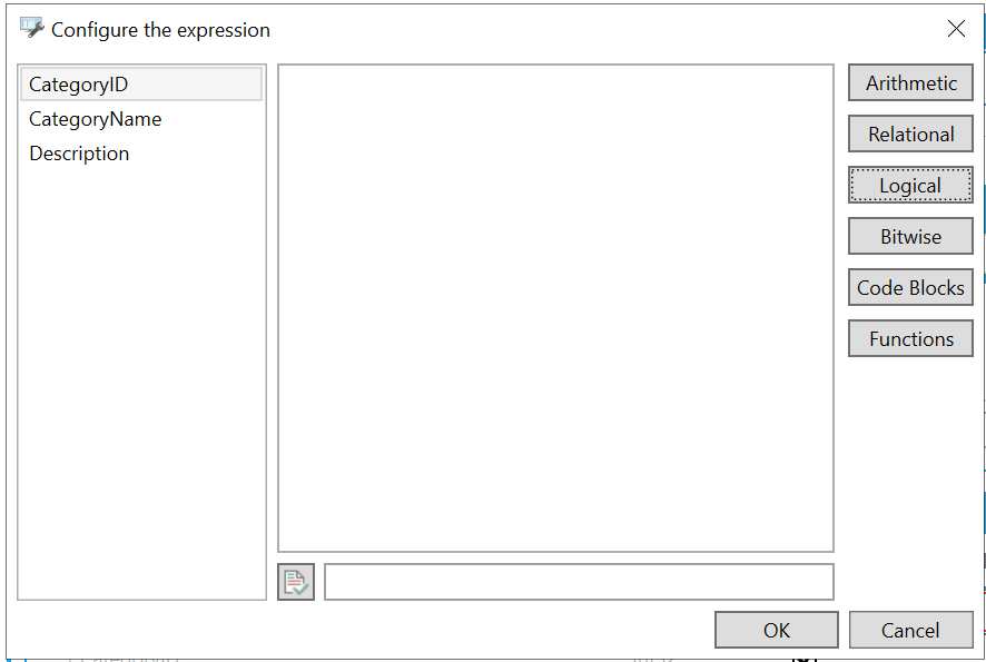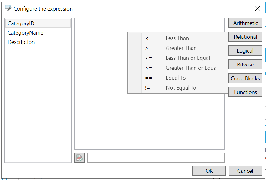 Expression Editor ('Configure the expression' window)