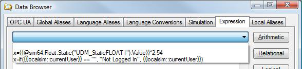 Expressions allow calculations to be performed on incoming data. An OPC server can provide data in one or more data types, such as "float," "long," "integer," "string," etc. Some OPC servers provide numeric data as a string. For example, the numeric value 20 may be provided as the string “20” (character "2" followed by character "0"). This may be lead an incorrect expression evaluation (see the String Comparison section above).