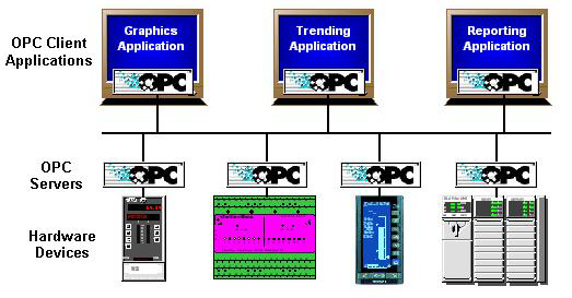 OLE⢠for Process Control (OPC) is a standards-based approach for connecting data sources (e.g., PLCs, controllers, I/O devices, databases, etc.) with HMI client applications (graphics, trending, alarming, etc.). It enhances the interface between client and server applications by providing a universally supported and well-documented mechanism to communicate data from a data source to any client application. Included are not only a detailed guide on how to pass the data, but also specific information on other attributes to supplement those data, such as range information, data type, quality flags, and date and time information.