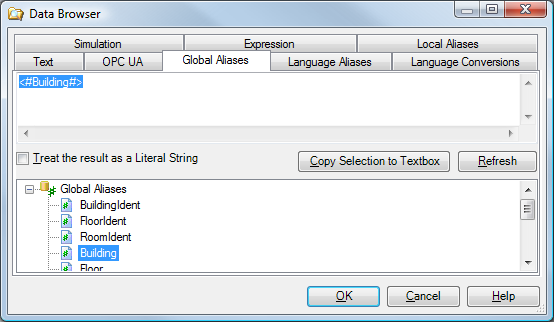 Compare the OPC UA tab above with the much simpler tab that exposes values in the Global Aliasing System's SQL database. The Local Aliases tab is simpler still.