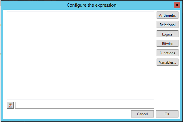 In the Read Expression section, you can enter the expression definition or click on the Configure expression link, which will open the Configure the expression window, where you can set the expression details. Once you have finished configuring the expression, click the OK button to return to the main expression window. Your newly configured expression details will now appear in the Read Expression text entry field.