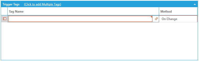 button to open the Data Browser and browse for your selected tag. Next, you can set a Method (On Change, On Become True, On Become False). You can also click on the Click to add Multiple Tags link, which allows you to make multiple selections in the Data Browser.